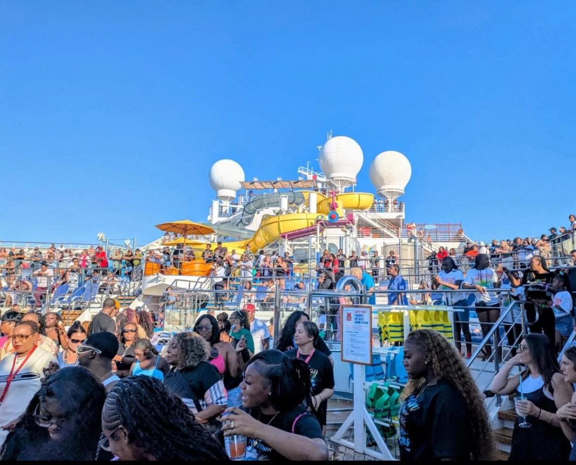 Everyone came out to kick things off at the Bon Voyage deck party. A DJ had music pumping and the whole pool deck turned into a giant dance floor.